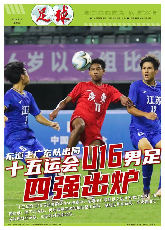 记者王伟报道 “确实可惜了,但队员们已经尽力了!”9月11日晚,当主裁判张雷吹响终场哨,梅州市五华县奥体中心体育场内,现场有球迷发出惋惜感叹。在十五运会U16男足赛阶段1/4决赛中,东道主广东队以2比4不敌江苏队,遗憾止步;除了江苏队,另外晋级四强的球队是山东队、湖北队和北京队。